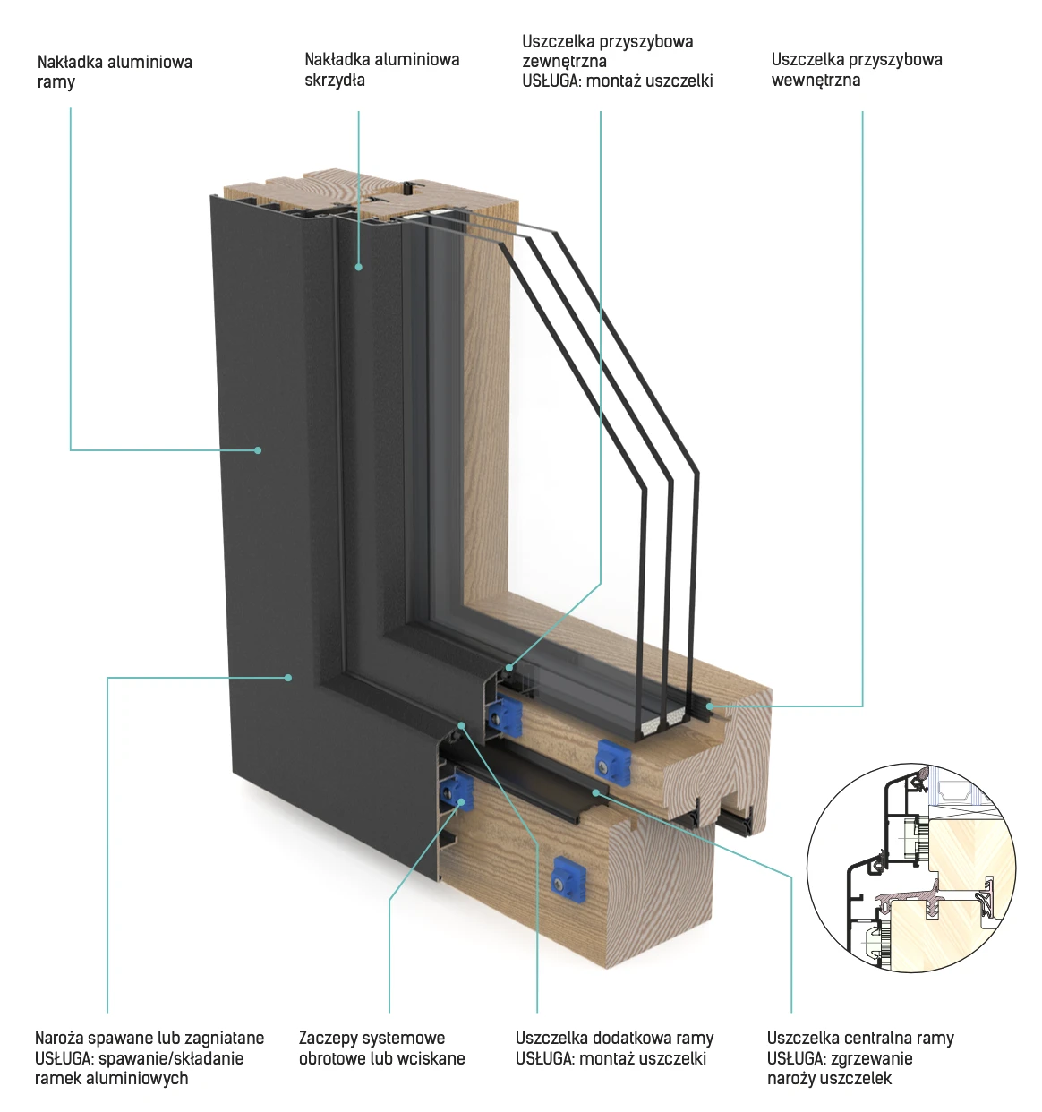 Współczynniku Uw okien aluminiowo-drewnianych jest ściśle uzależniony od indywidualnie wybranego przez Państwa modelu.